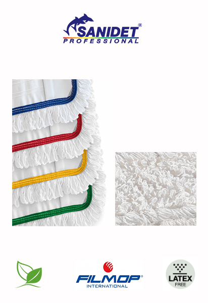 Mop franjuri din poliester și bumbac, suport din pânză poliester, fir continuu,